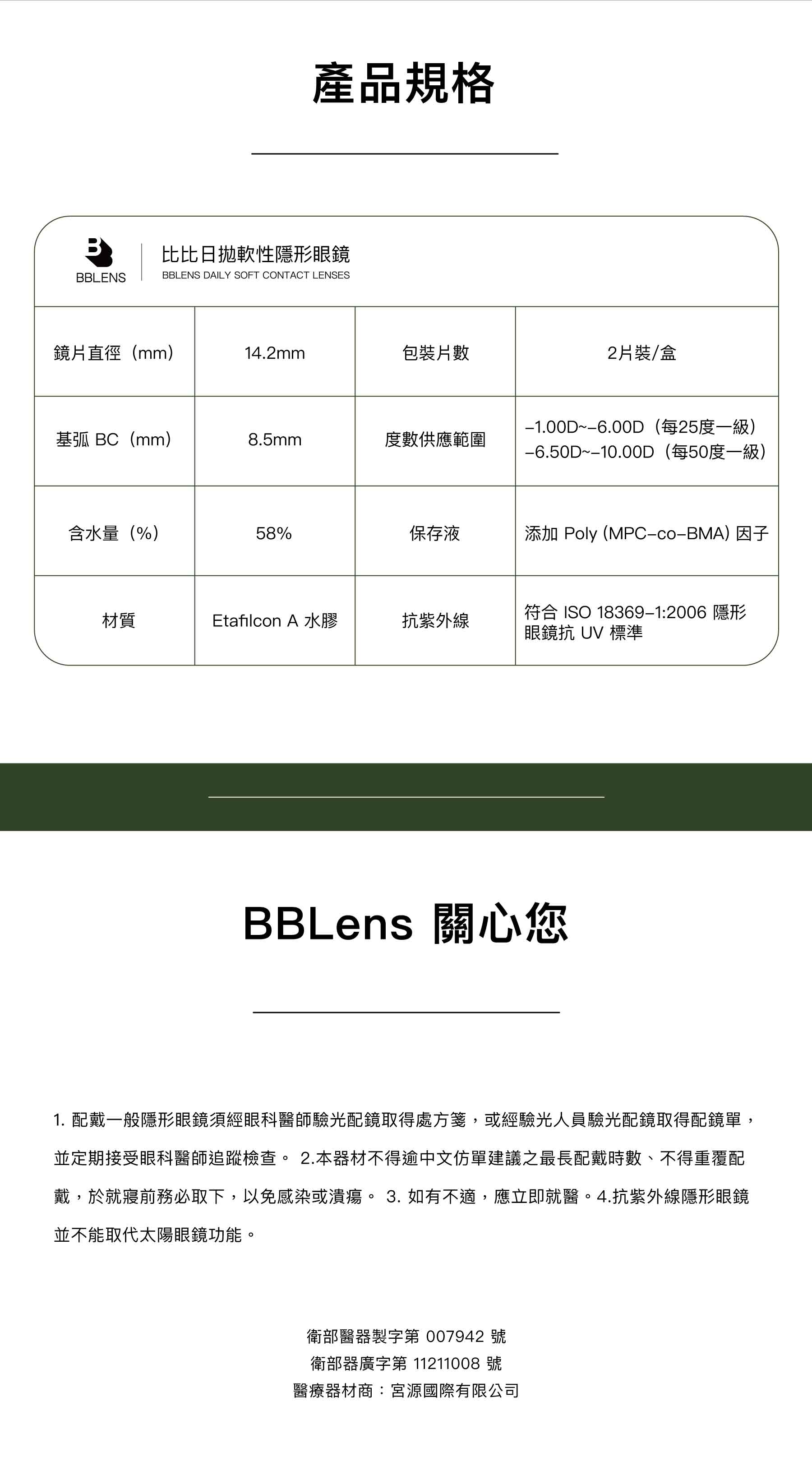 ► 首購須店面取貨,第二次起才能寄到家。BBLens 全台超過 1000 間取貨店(屈臣氏、丁丁藥局、專業眼鏡店等),非常方便。