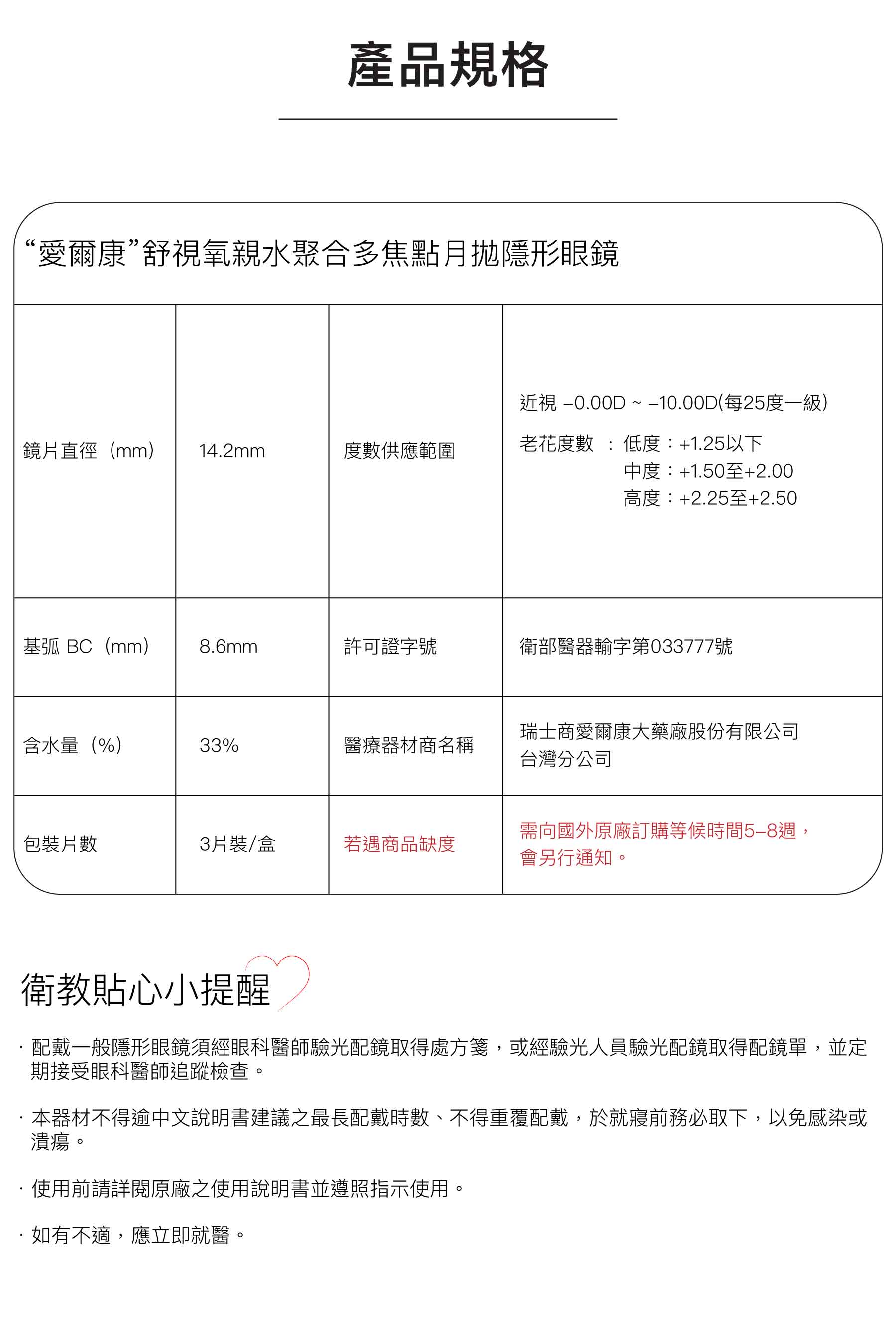 “愛爾康”舒視氧親水聚合多焦點月拋隱形眼鏡
