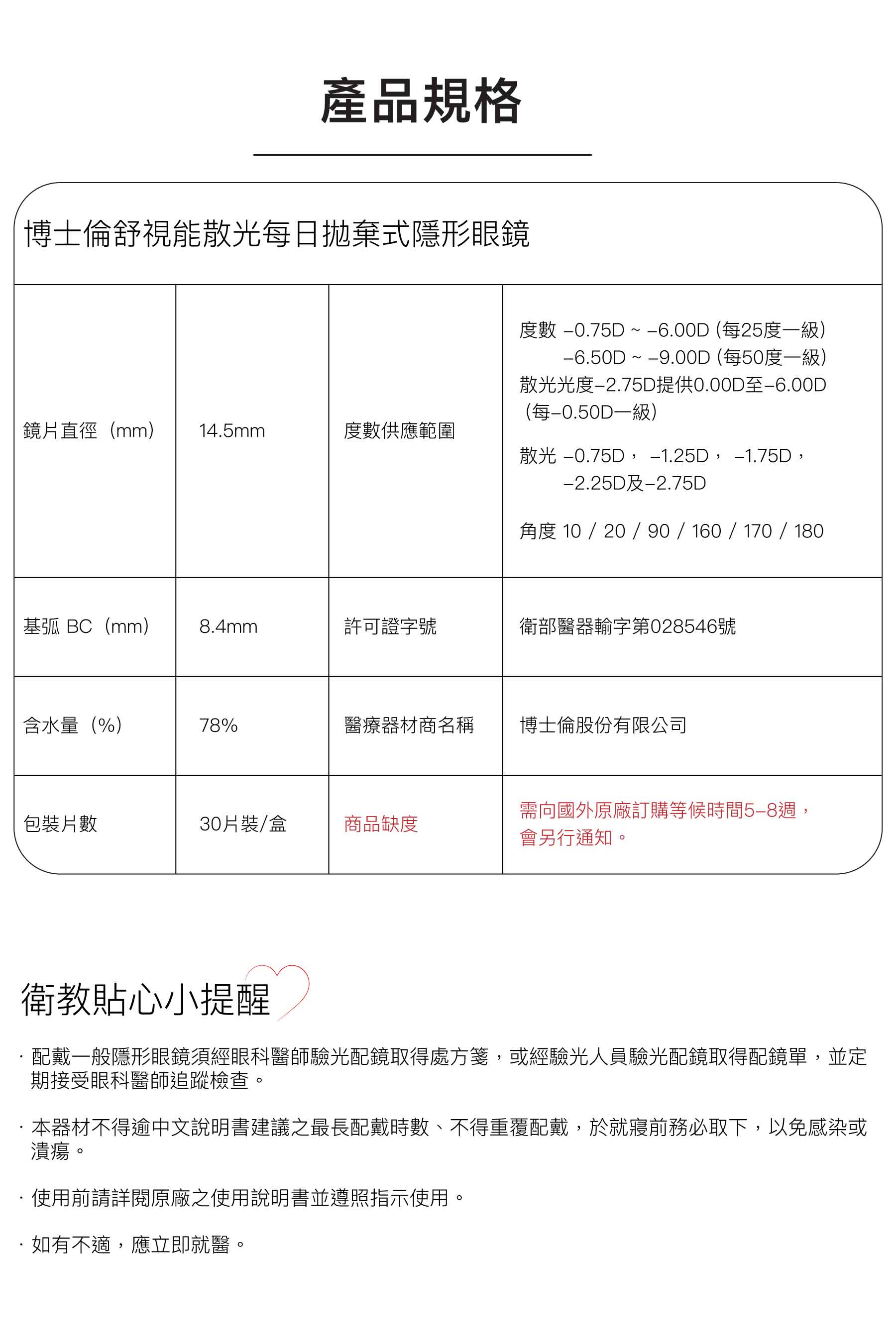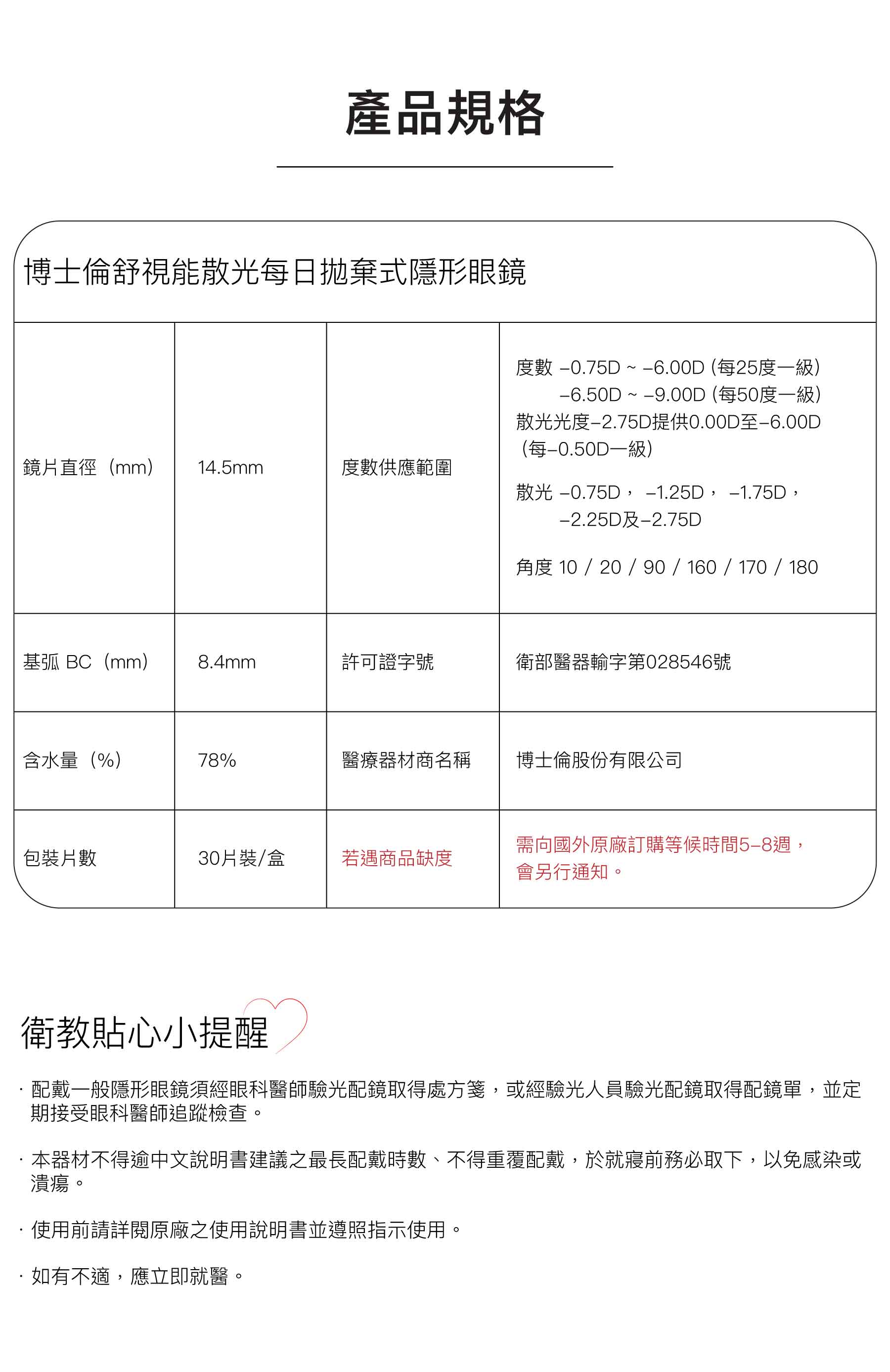 博士倫舒視能散光每日拋棄式隱形眼鏡