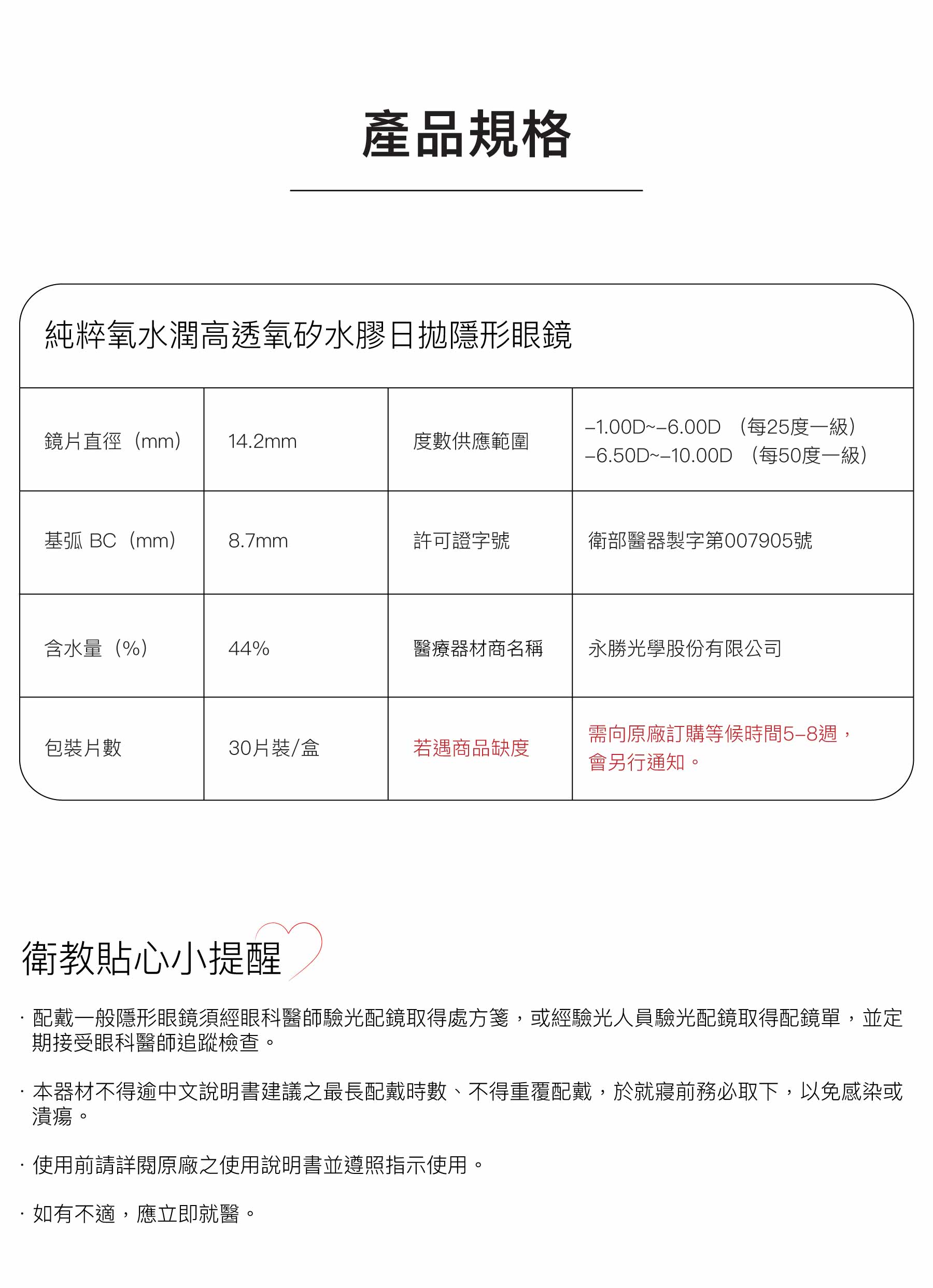 純粹氧水潤高透氧矽水膠日拋隱形眼鏡