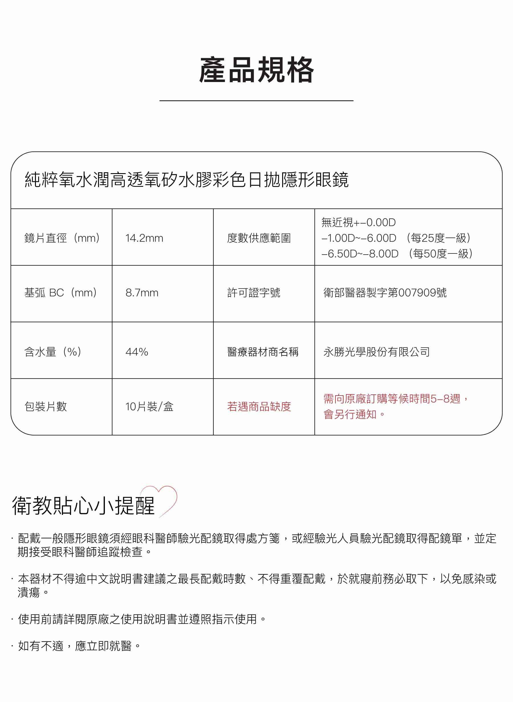純粹氧水潤高透氧矽水膠彩色日拋隱形眼鏡
