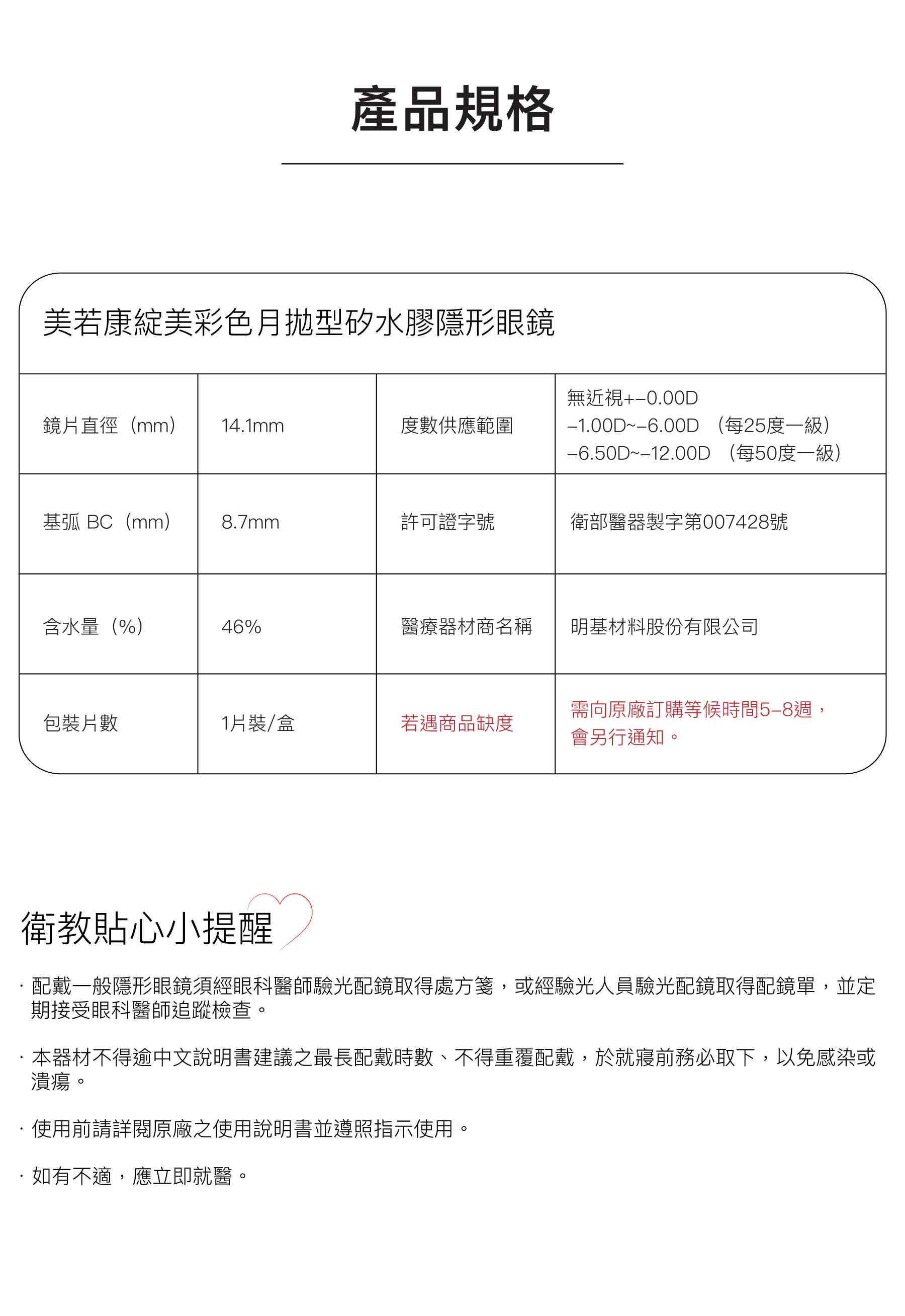 美若康綻美彩色月拋型矽水膠隱形眼鏡