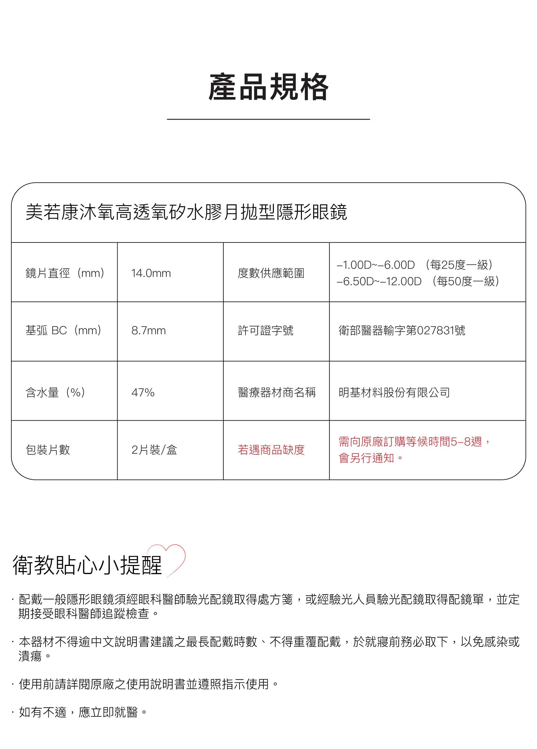 美若康沐氧高透氧矽水膠月拋型隱形眼鏡