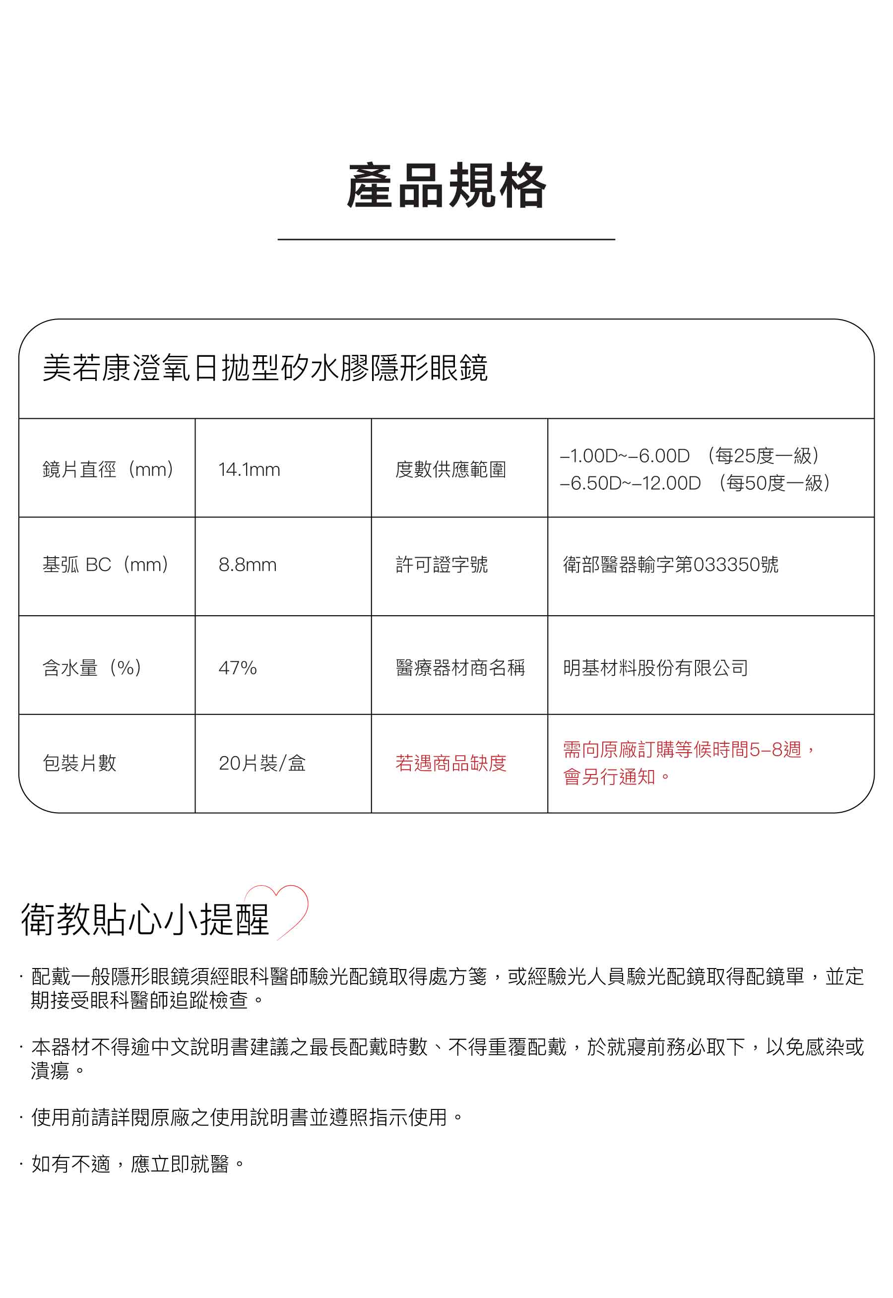 美若康澄氧日拋型矽水膠隱形眼鏡