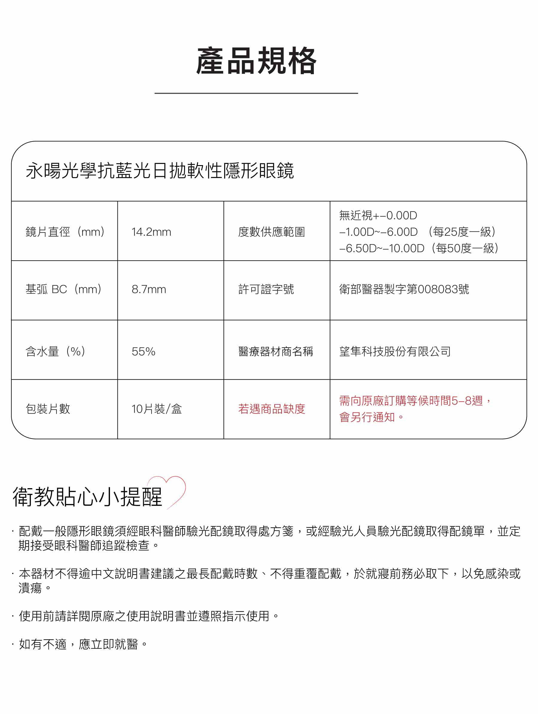 永暘光學抗藍光日拋軟性隱形眼鏡