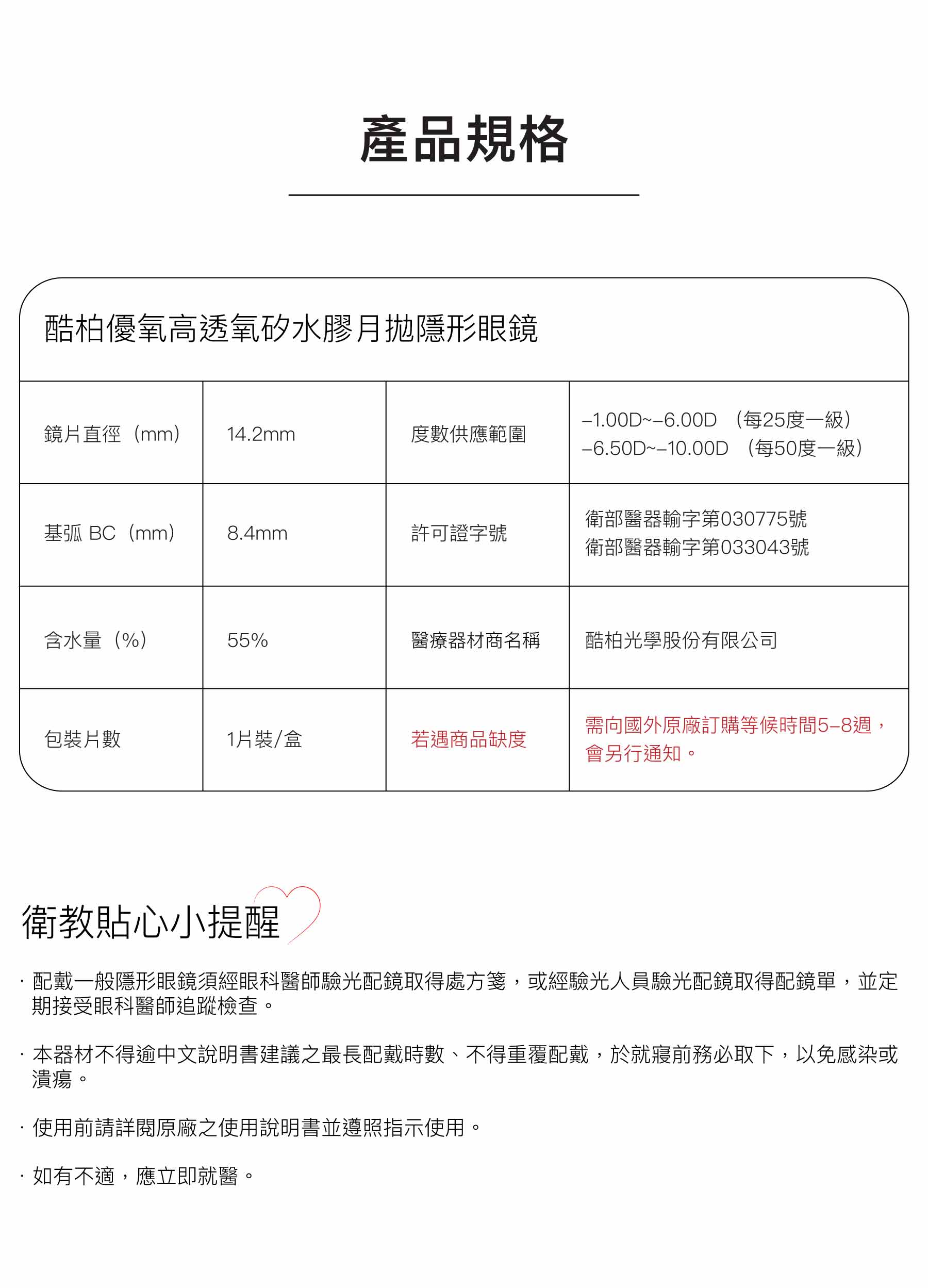 酷柏優氧高透氧矽水膠月拋隱形眼鏡