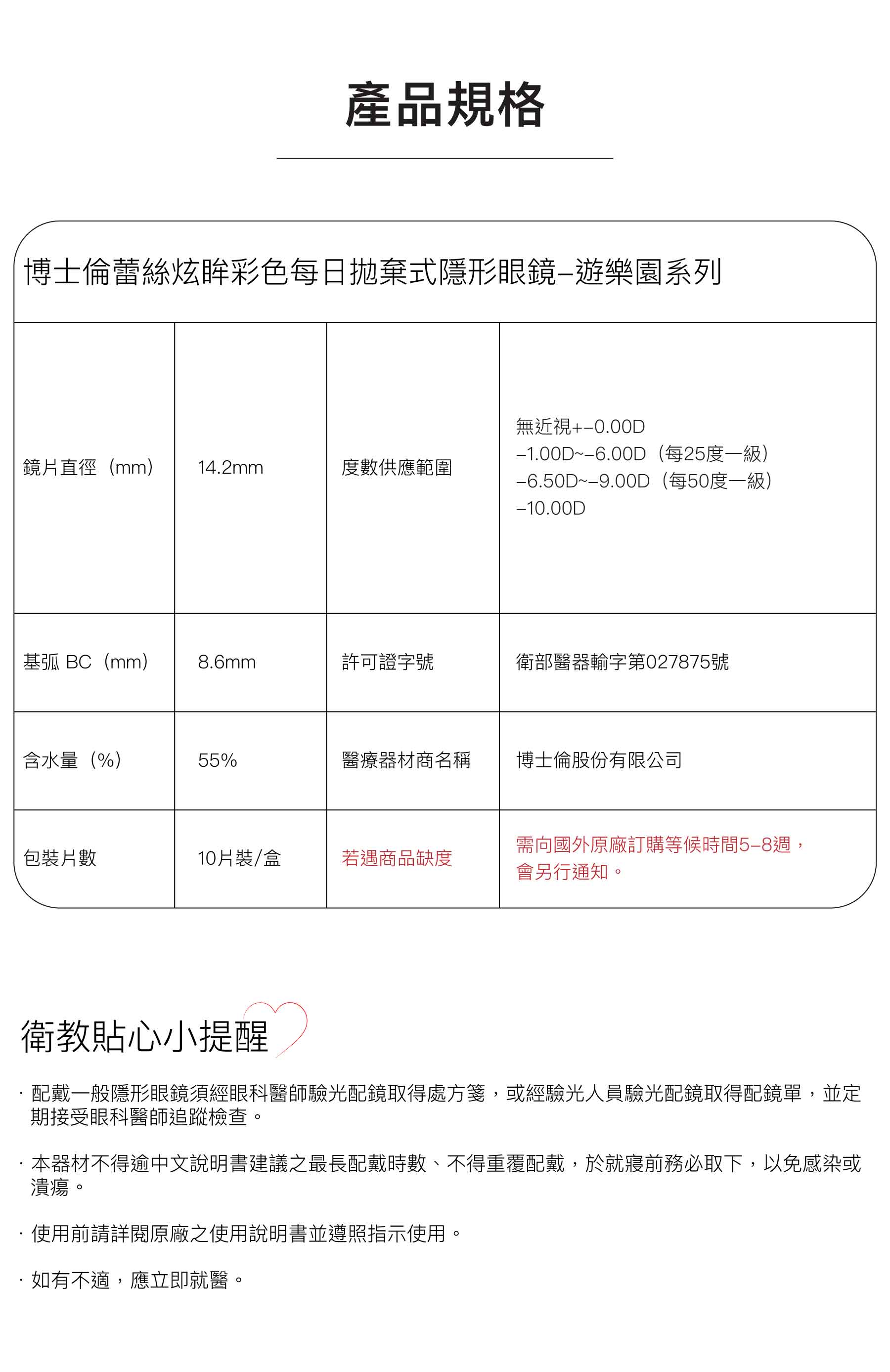 博士倫蕾絲炫眸彩色每日拋棄式隱形眼鏡