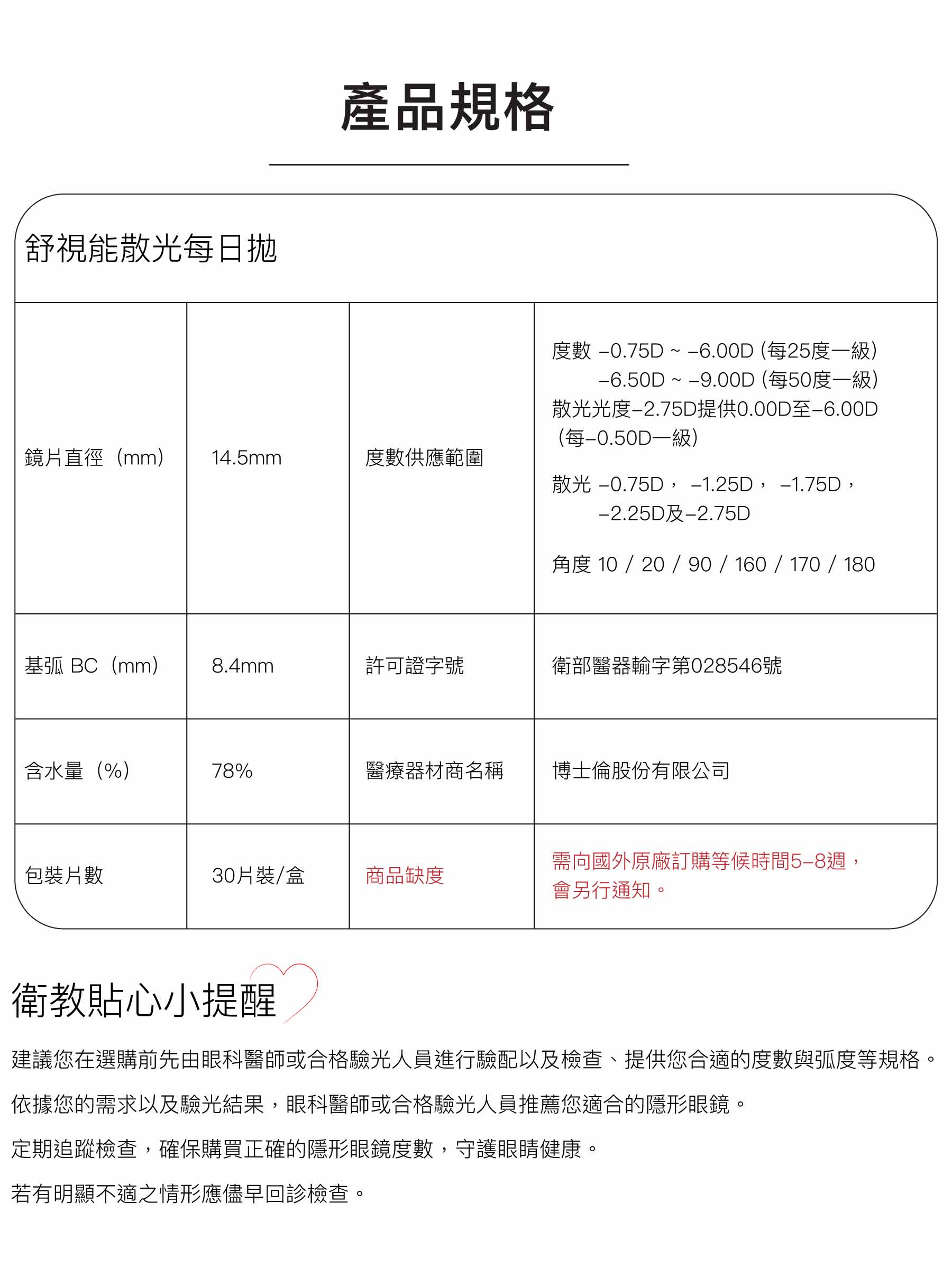 博士倫舒視能散光每日拋棄式隱形眼鏡