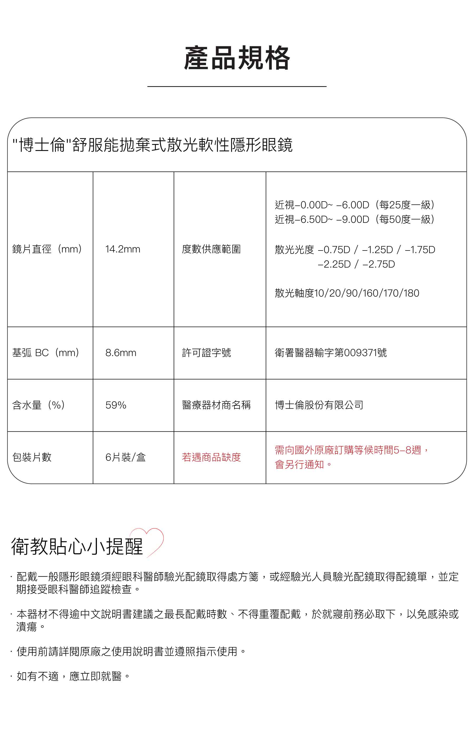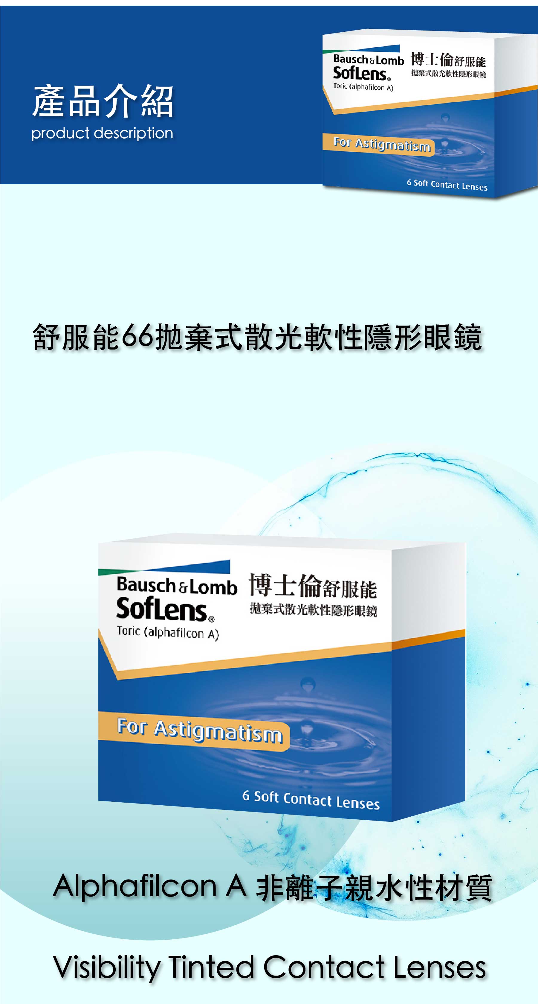 "博士倫"舒服能拋棄式散光軟性隱形眼鏡