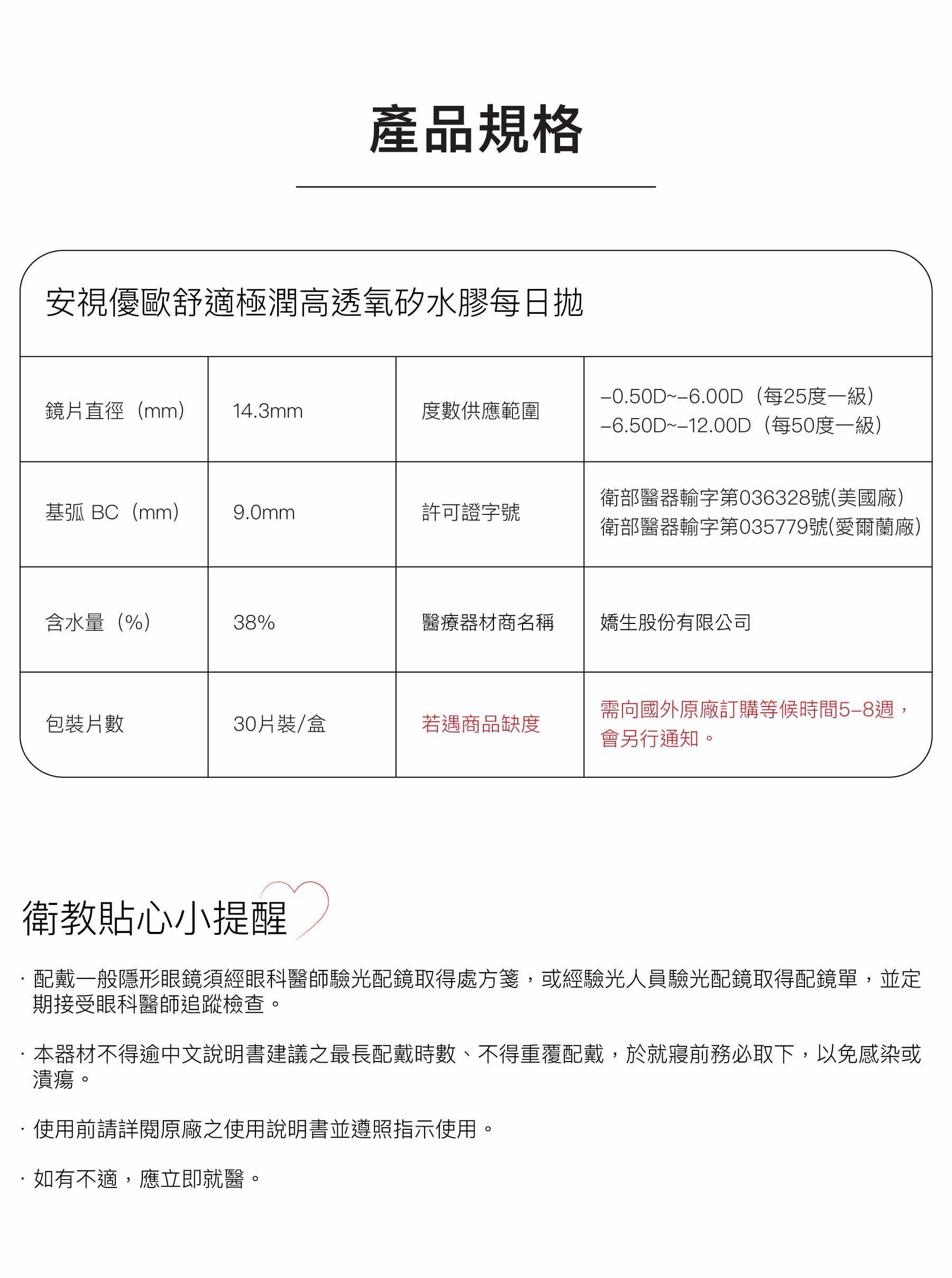 安視優歐舒適極潤高透氧矽水膠每日拋