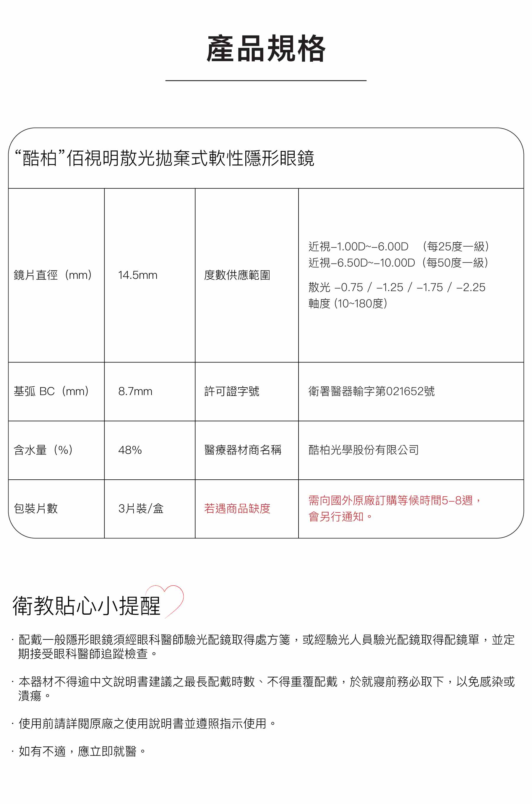 “酷柏”佰視明散光拋棄式軟性隱形眼鏡