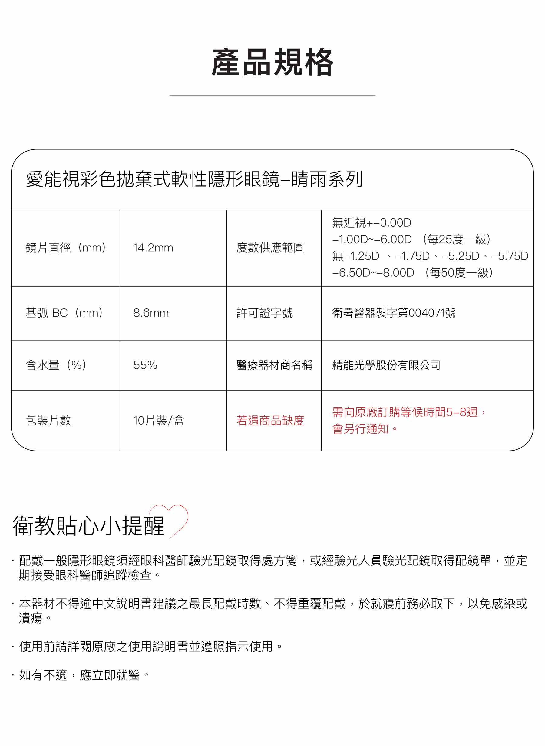 愛能視彩色拋棄式軟性隱形眼鏡