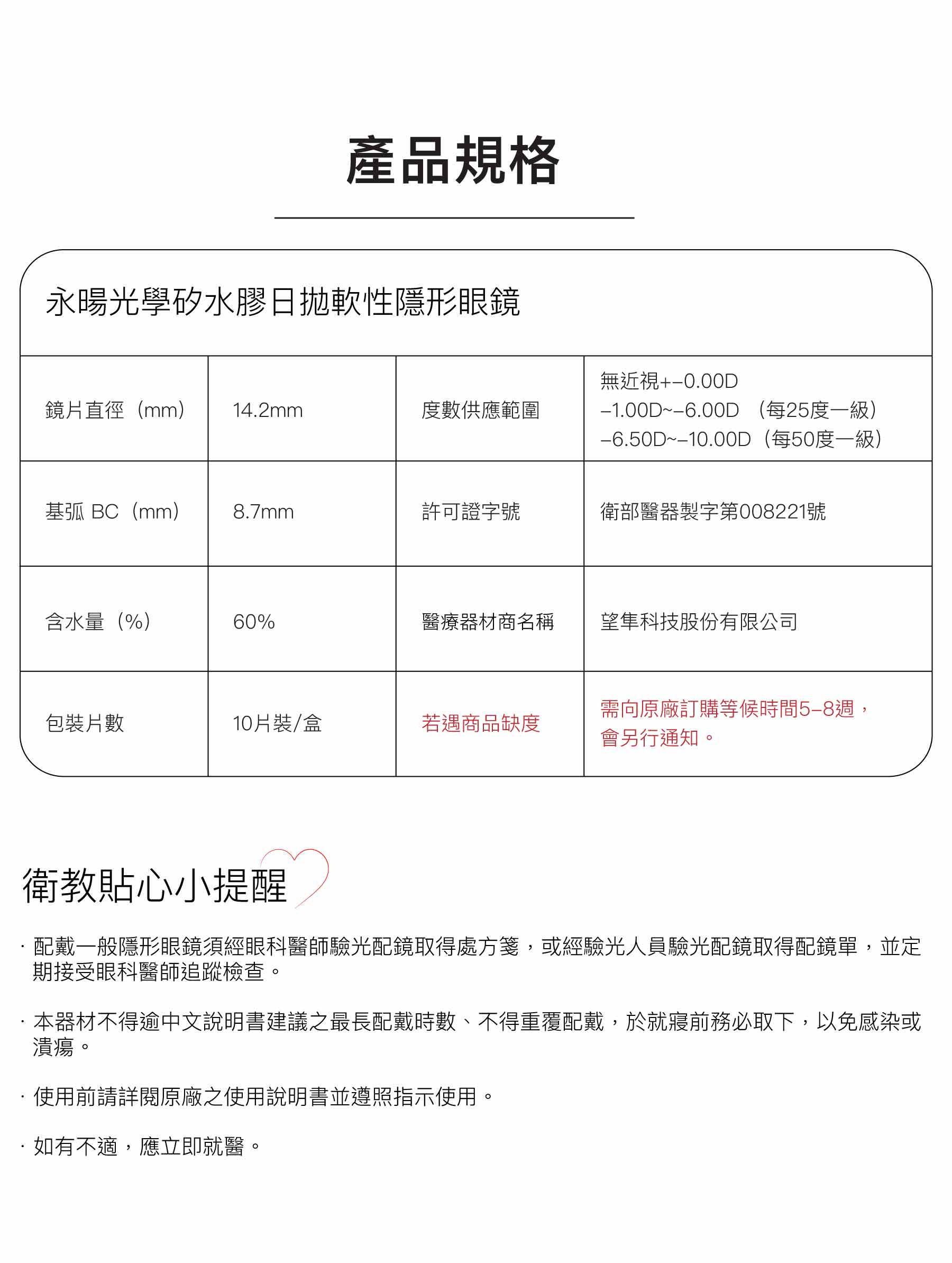 永暘光學矽水膠日拋軟性隱形眼鏡