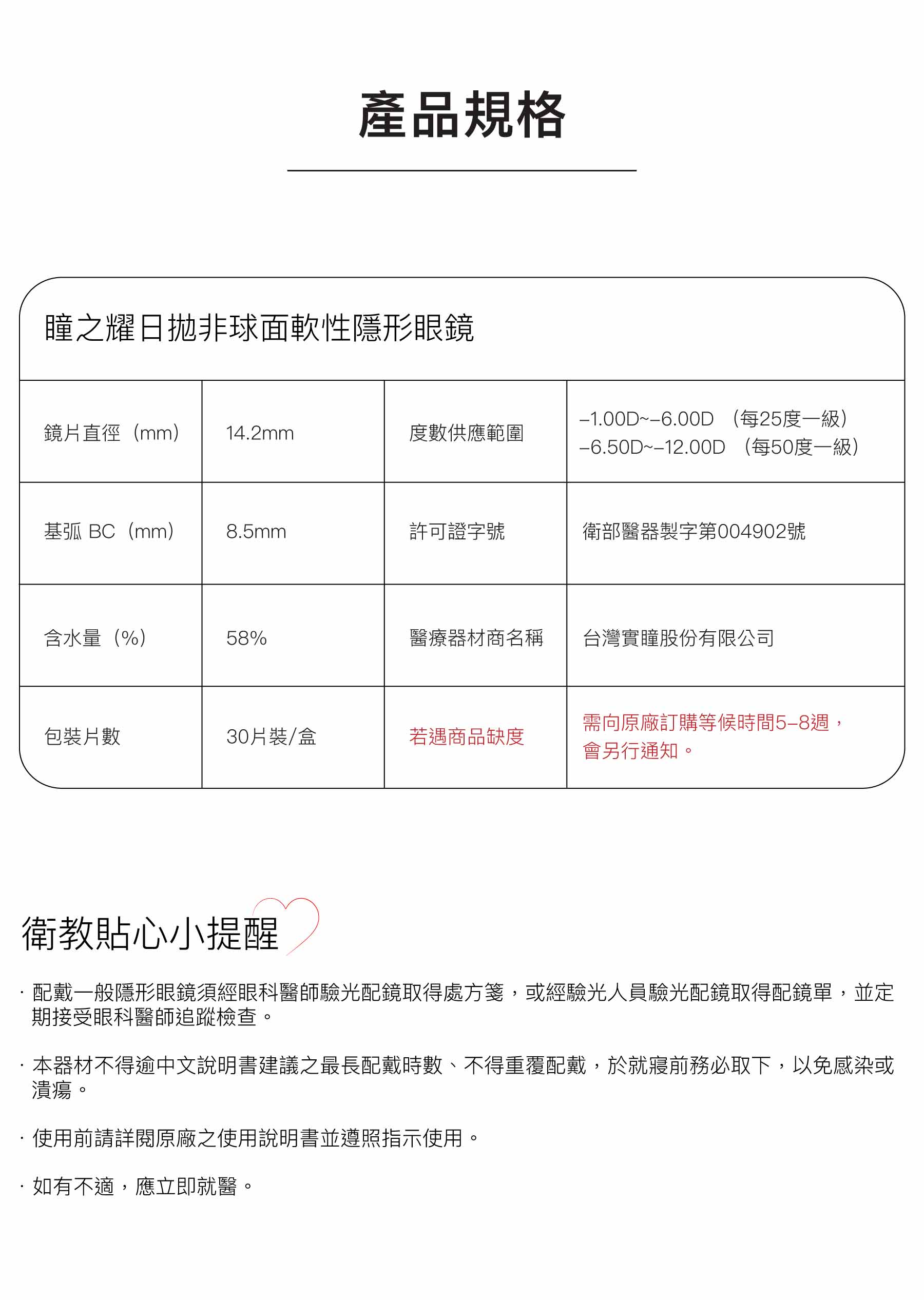 瞳之耀日拋非球面軟性隱形眼鏡