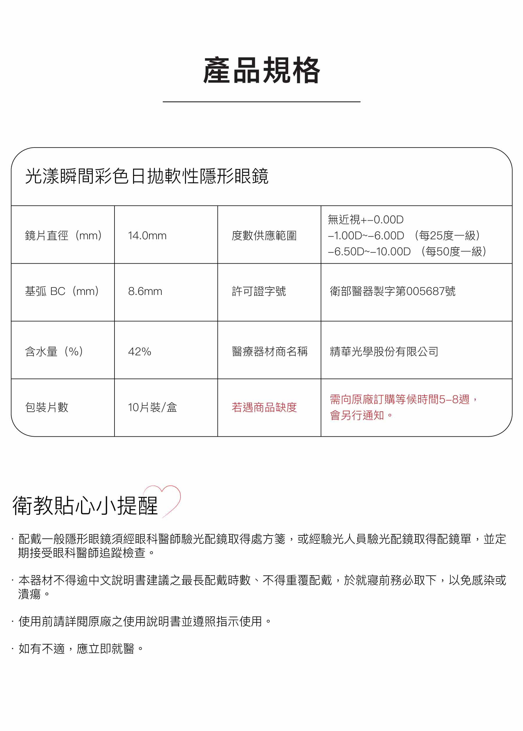 光漾瞬間彩色日拋軟性隱形眼鏡